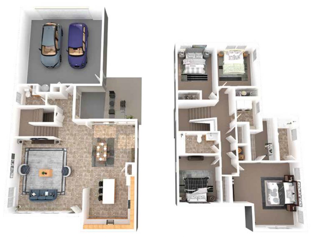 Open concept PLUS a great master suite! The main level features an open concept living/dining/kitchen layout, with an L-shaped kitchen which maximizes counterspace, including a pantry. There's an island with double sink and dishwasher with an extended countertop for bar seating or serving into the dining area. The large lanai is accessed from the dining area. There's a half bath near the entry. Upstairs, the master suite has a massive walk-in closet. The private master bath has double sinks. The three secondary bedrooms have nice sized closets and share the hall bath. Convenient second floor laundry room with a utility sink and an interior bulk storage area and linen closet keep things organized. The attached, oversized two car garage offers additional storage.