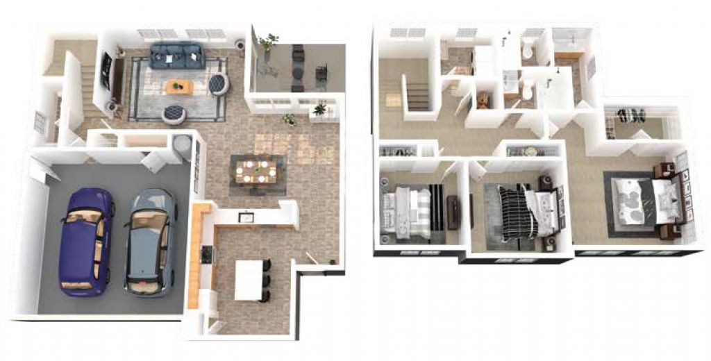 Modern 2 story, 3 bedroom home with two car garage, private lanai, and central air conditioning. Enter the home from the covered porch. Home features an open floor plan on the first level that includes a powder room. The kitchen features corian countertops, energy efficient appliance and a large island. The second story contains the master bedroom suite with a full bath with double sinks and a large walk-in closet. The other two bedrooms share the center hall bathroom which is next to the convenient upstairs laundry room