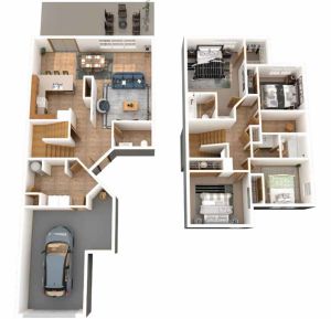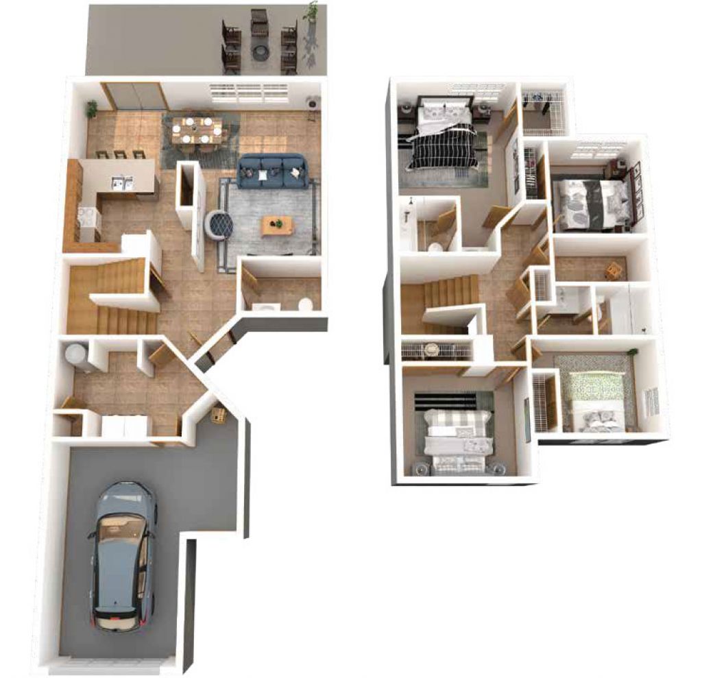 Big living area! The living/dining area is open concept. There's a galley kitchen with pantry and a flex room to use as you'd like - den, office, craft room, or use that as the dining space. The utility room, half bath and interior storage are tucked away. Upstairs, The master suite has a large closet and private bath. The two secondary bedrooms share the full hall bath.