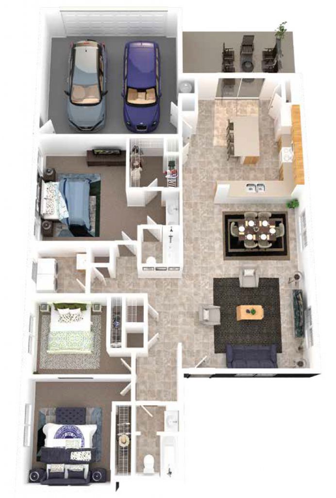 Single story with great use of space! The large open concept living/dining/kitchen features an L-shaped kitchen to maximize counterspace. There's a separate island with double bowl sink and dishwasher and an extended countertop for bar seating or serving into the dining area. Lanai access is from the kitchen area. The master suite is great! Large bedroom, huge walk-in closet and a private bath with double sinks. The two secondary bedrooms share a full hall bath. The laundry area adds a bit of storage, as does a hall closet. An attached two car oversized garage contributes more storage space.