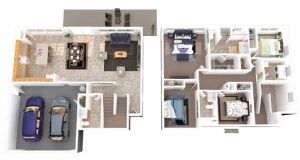 Open concept PLUS a great master suite! The main level features an open concept living/dining/kitchen layout, with an L-shaped kitchen which maximizes counterspace, including a pantry. There's an island with double sinks and dishwasher with an extended countertop for bar seating or serving into the dining area. The large lanai is accessed from the dining area. There's a half bath near the entry. Upstairs, the master suite has a massive walk-in closet. The private master bath has double sinks and a separate shower and soaking tub. The three secondary bedrooms have nice sized closets and share the hall bath. Convenient second floor laundry room with a utility sink and an interior bulk storage area and linen closet keep things organized. The attached, oversized two car garage offers additional storage.