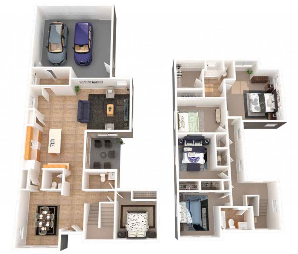 Great family space! The living, dining and kitchen area are open concept and flank the lanai and patio. The L-shaped kitchen maximizes counterspace and includes a pantry and a separate island. The "flex room" could be used for many purposes - office, den, craft room, studio, home school room - it's up to you. The fifth bedroom and full bath are on the main level. A laundry completes the main floor. Upstairs, the large master suite has a great walk-in closet and master bath with double sinks and separate W.C. The three secondary bedrooms have nice sized closets and share the hall bath. There are two large hall closets for interior bulk storage.