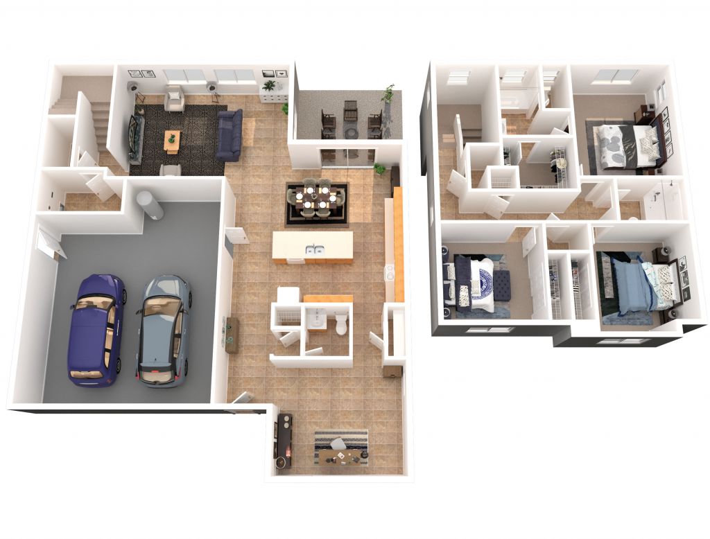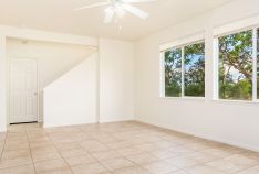 Great family space! The living, dining and kitchen area are open concept and flank the lanai and patio. The L-shaped kitchen maximizes counterspace and includes a pantry and a separate island. The "flex room" could be used for many purposes - office, den, craft room, studio, home school room - it's up to you. A laundry and half bath complete the main floor. Upstairs, the large master suite has a great walk-in closet and master bath with double sinks and separate W.C. The two secondary bedrooms have nice sized closets - one is a walk-in - and share the hall bath. There are two large hall closets for interior bulk storage. The attached, two car, oversized garage offers additional storage.
