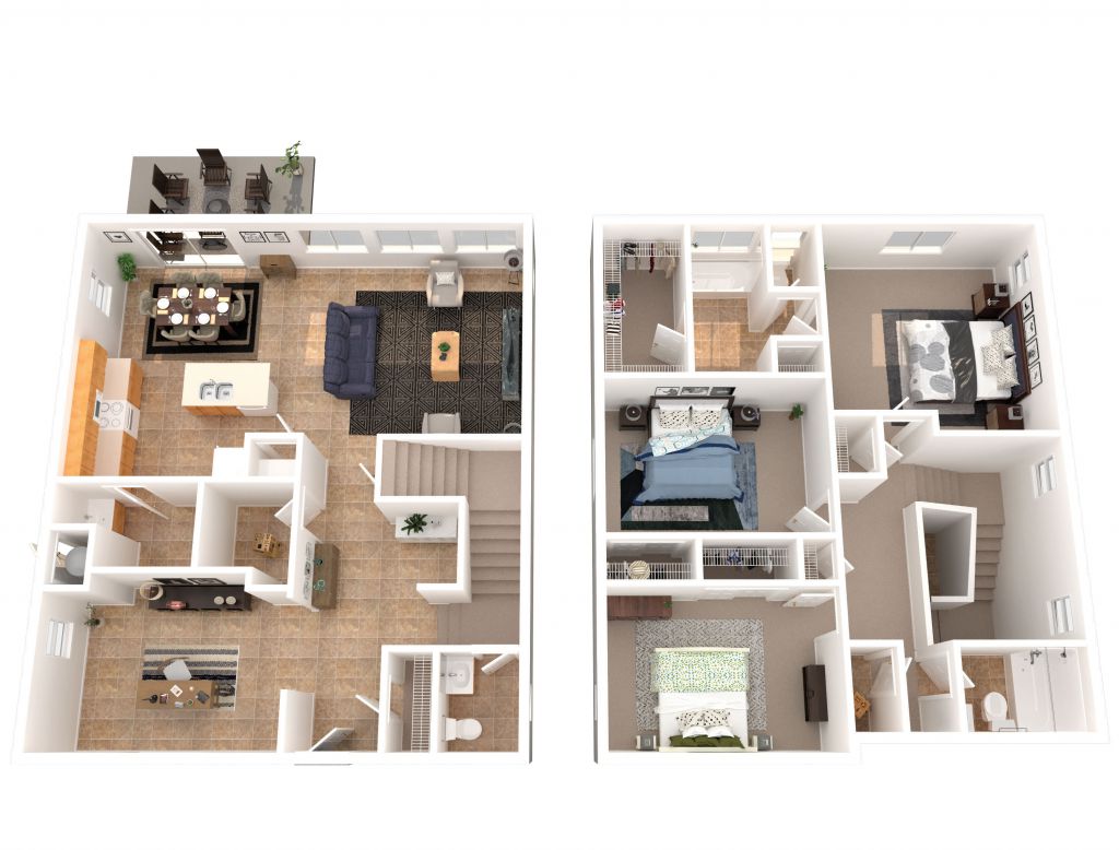 Great family space and a unique staircase! The living, dining and kitchen area are open concept and flank the lanai and patio. The galley kitchen includes a pantry and a separate island. The "flex room" could be used for many purposes - office, den, craft room, studio, home school room - it's up to you. A laundry and half bath complete the main floor. Up the U-shaped staircase, the large master suite has a great walk-in closet and master bath with double sinks, a linen closet and separate W.C. The two secondary bedrooms have nice sized closets - one is a walk-in - and share the hall bath. There are two large hall closets for interior bulk storage. The attached, two car, oversized garage offers additional storage.