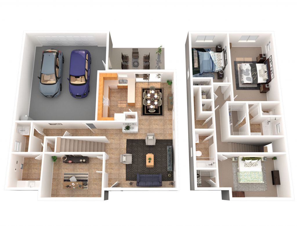 Great family space! The living, dining and kitchen area are open concept and flank the lanai. The U-shaped kitchen maximizes counterspace, includes a pantry and a separate island. The "flex room" could be used for many purposes - office, den, craft room, studio, home school room - it's up to you. A laundry and half bath complete the main floor. Upstairs, the large master suite has a great walk-in closet and master bath with double sinks, a linen closet and separate W.C. The two secondary bedrooms have nice sized closets - one is a walk-in - and share the hall bath. There are two large hall closets for interior bulk storage. The attached, two car, oversized garage offers additional storage.
