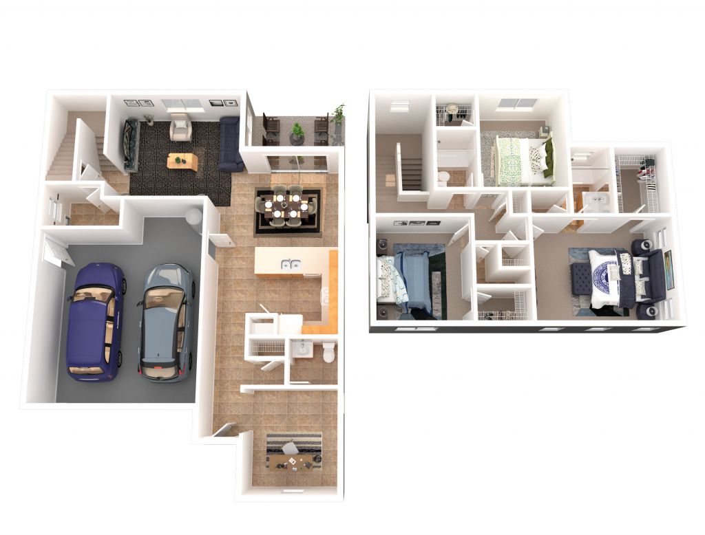 Great family space! The living, dining and kitchen area are open concept and flank the lanai. The galley kitchen includes a pantry and a separate island. The "flex room" could be used for many purposes - office, den, craft room, studio - it's up to you. A laundry and half bath complete the main floor. Upstairs, the large master suite has a great walk-in closet and master bath with double sinks, a linen closet and separate W.C. The two secondary bedrooms have walk-in closets and share the hall bath. There are two large hall closets for interior bulk storage. The attached, two car, oversized garage offers additional storage.