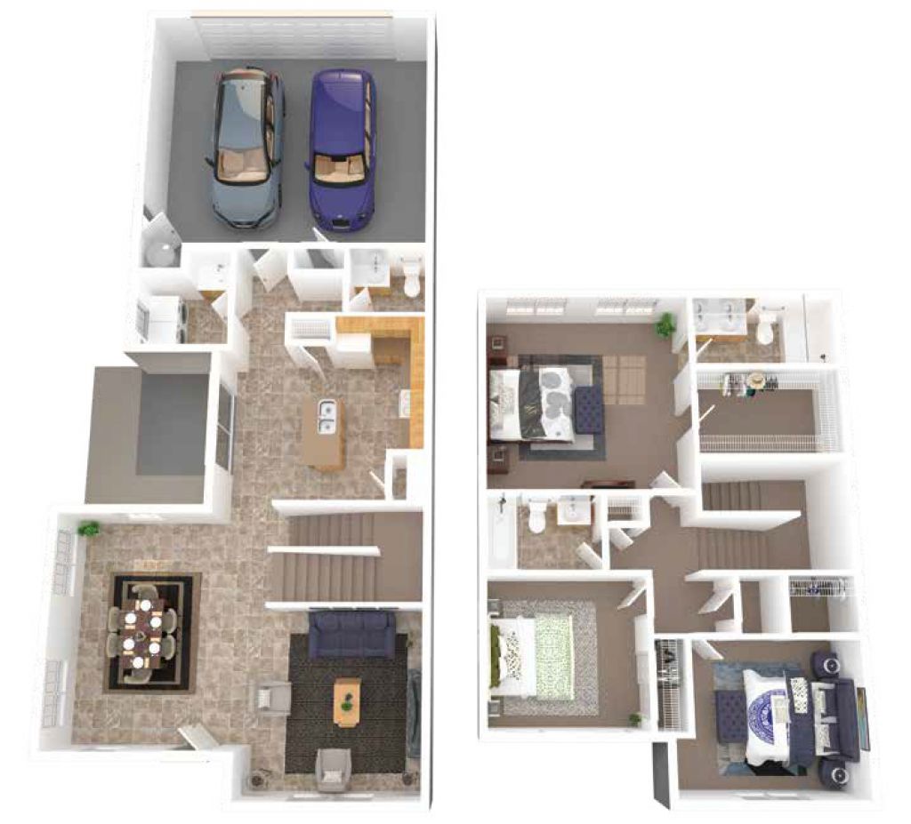 Nice flow!  The large living room, dining area and kitchen are truly open concept.  The kitchen is an L-shape to maximize counterspace and has a separate island with double bowl sink and dishwasher and an extended countertop for bar seating or serving.  The lanai is accessible from the kitchen area and offers good views from the dining area as well.  The powder room and laundry are tucked away close to the garage.  Upstairs, the master suite has a huge closet and private master bath with double sinks.  The two secondary bedrooms share the hall bath.  Interior storage on the second floor and the attached 2 car oversized garage offer additional storage.