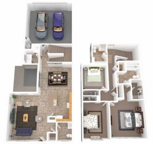 Nice flow!  The large living room, dining area and kitchen are truly open concept.  The kitchen is an L-shape to maximize counterspace and has a separate island with double bowl sink and dishwasher and an extended countertop for bar seating or serving.  The lanai is accessible from the kitchen area and offers good views from the dining area as well.  The powder room and laundry are tucked away.  Upstairs, the master suite has a huge closet and private master bath with double sinks.  The two secondary bedrooms share the hall bath.  Interior storage on the second floor and the attached 2 car oversized garage offer additional storage.