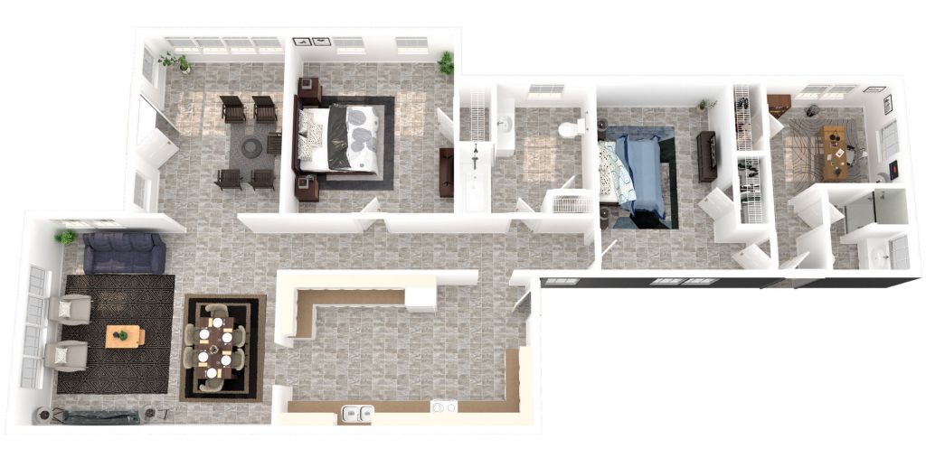 Cozy, Single story, 2 bedroom, historic home with 1.5 bathrooms! Enter from the large covered lanai into the cavernous combined living and dining room. The hall off the living room leads to two large bedrooms, each with its own private full bath. The large kitchen area is located at the back of the house and has updated appliances. There is also a laundry room adjacent to the kitchen. The former maid's room, with a half bath, is locateed behind the laundry room.