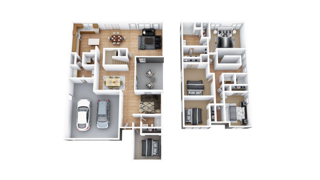 This modern, 2 story, 4 bedroom, 2.5 bath home features central air conditioning, a large covered front porch, and large covered private lanai, a 2 car garage (with extra storage space), and a modern open floor plan. The kitchen includes a nook area, modern appliances, a pantry, and an island breakfast bar. There is also a laundry room and powder room located nearby. The dining room is easily accessible from the kitchen, family room and front hall. Enjoy the view of the centrally located covered lanai from throughout the first floor including the front living room area. Upstairs you will find a large master suite with a huge walk-in closet and full bath with double sinks. The remaining two good-sized bedrooms share the second full bath in the central hall which also holds an additional storage closet.