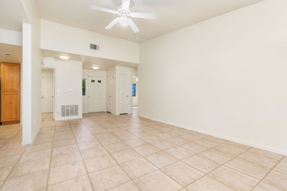 This single story, 2 bedroom home features an open concept plan with plenty of living space. The garage contains a large storage area and provides access to the house through the laundry room (with washer and dryer hook-up). The kitchen is well laid out and provides a view of the family room and covered lanai areas. In addition there is a generously sized living room. The master suite includes double closets and a sink area and a separate access into the shared bath. The full bath is located in the hall between the two bedrooms and additional storage can also be found in this hall.