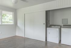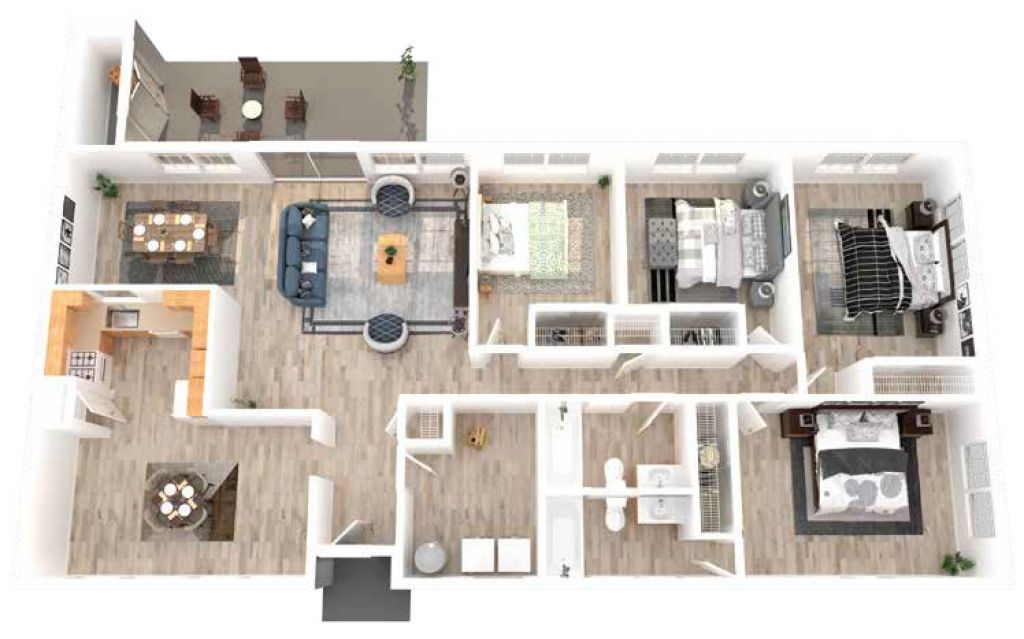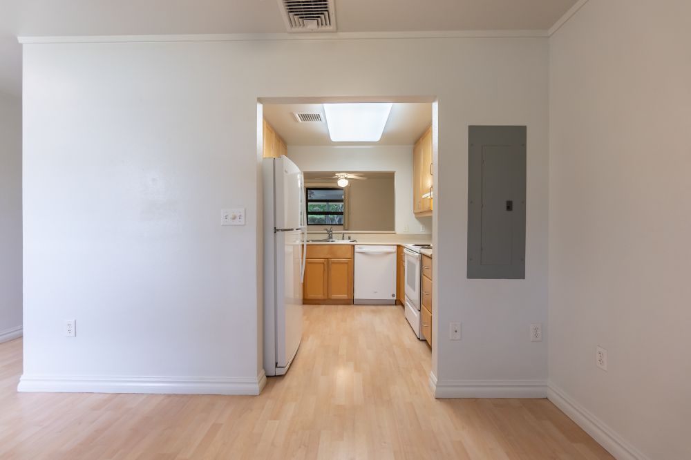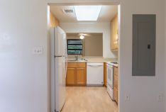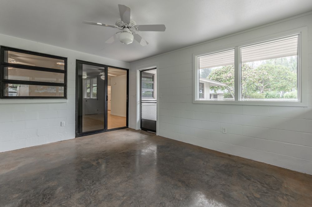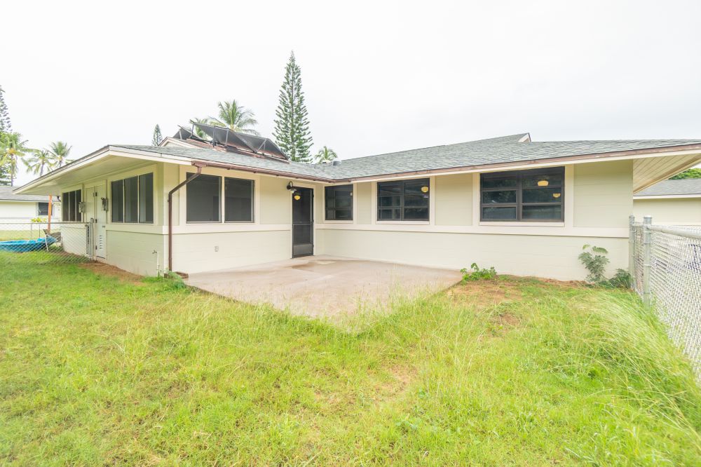 Single story, 4 bedroom, 2 bath, central air conditioned enlisted home. Skylights brighten the interior and the eat-in kitchen features modern appliances. The large combination living and dining room area leads onto the covered lanai. The master bedroom suite contains a large closet and its own private full bath. The second full bath is shared by the remaining three bedrooms. There is also a sizable laundry and storage room.
