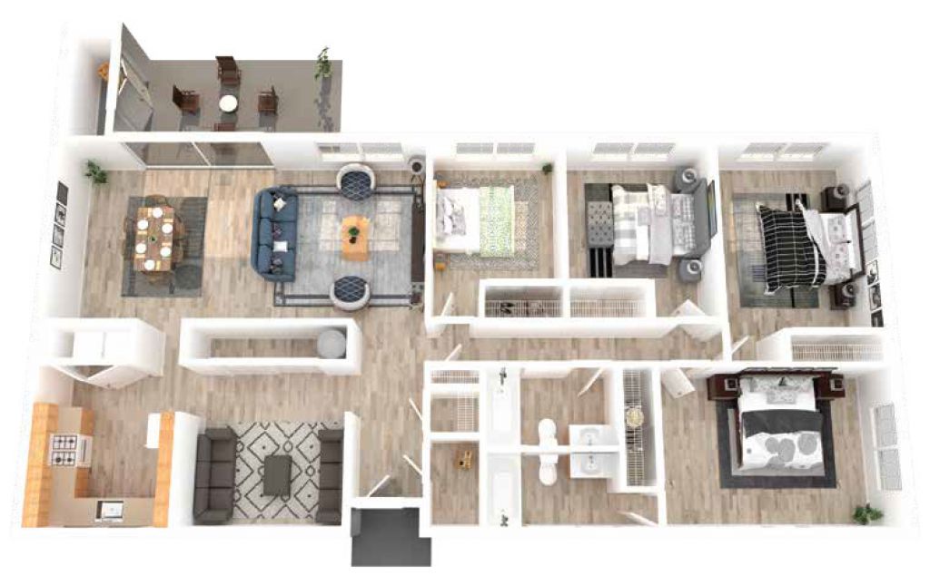 Single story, 4 bedroom, 2 bath, central air conditioned officer home. skylights brighten the interior and the kitchen contains modern appliances and an enclosed washer and dryer. There is a family room located adjacent to the kitchen as well. The large combination living and dining room area leads onto the covered lanai. The master bedroom suite contains a large closet and its own private full bath. The second full bath is shared by the remaining three bedrooms. There is also a storage room.