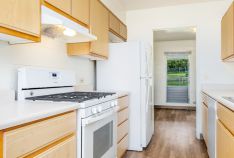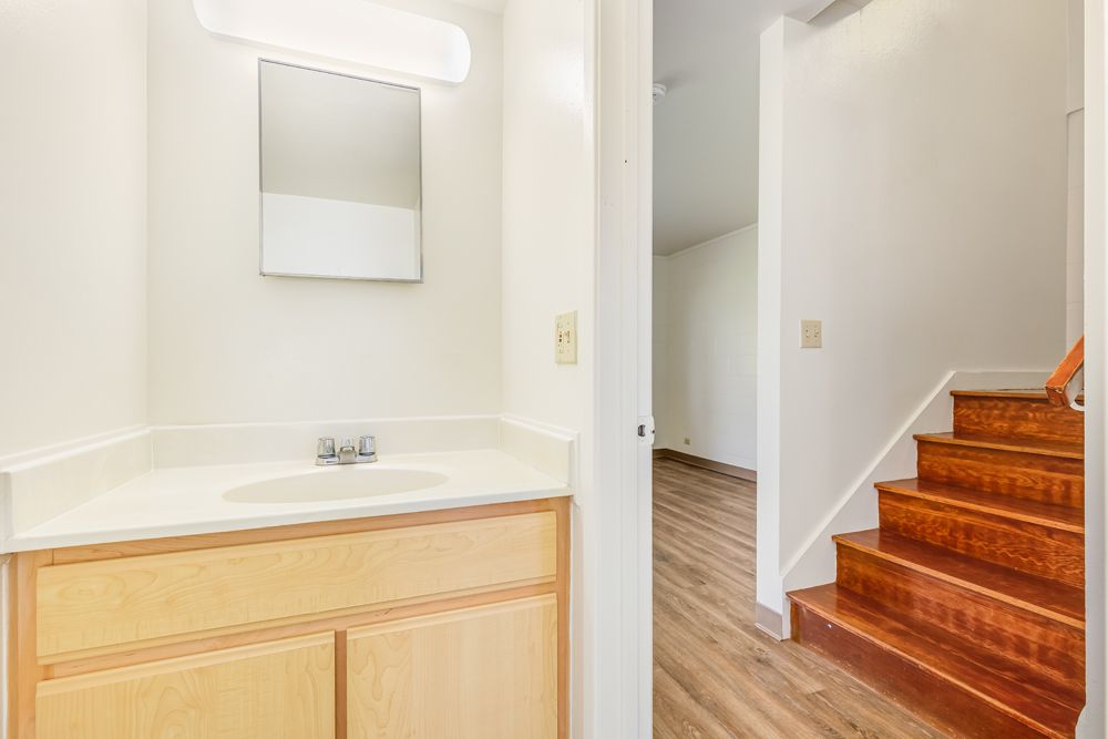 The homes are 2-bedroom townhomes with NEWLY renovated Luxury Vinyl Plank (LVP) flooring, carport and guest parking, central air conditioning, large master bedroom walk-in closets, kitchens with built-in dishwashers and garbage disposals, washer/dryer connection, wooden stairs, and exterior storage.